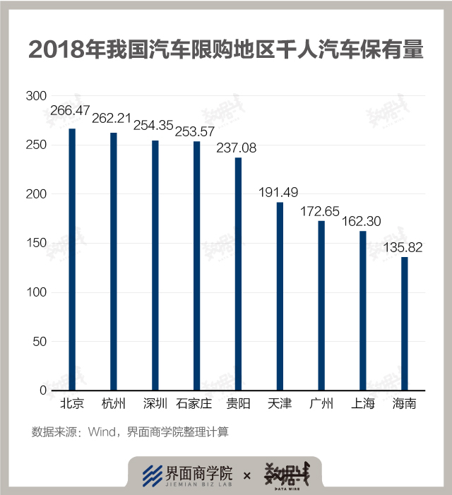 目前,我国人均汽车保有量仍处在较低水平,2019年仅为186辆/千人,实施严格限购的9个省市平均也仅为215辆/千人,部分限购城市存在被明显抑制的真实需求,限购政策存在放松的空间。