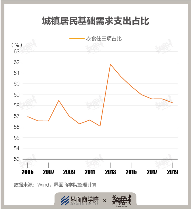 尽管如此,2017年以来,方便面的“东山再起”和拼多多等下沉平台的突然崛起,都意味着中低收入群体可能存在消费降级的情况。刘向东等的研究显示,收入处在 28%分位之下的居民家庭整体面临消费降级的情况,即这部分收入群体虽然服务性消费占比也在上升,但非基本消费占比减少。