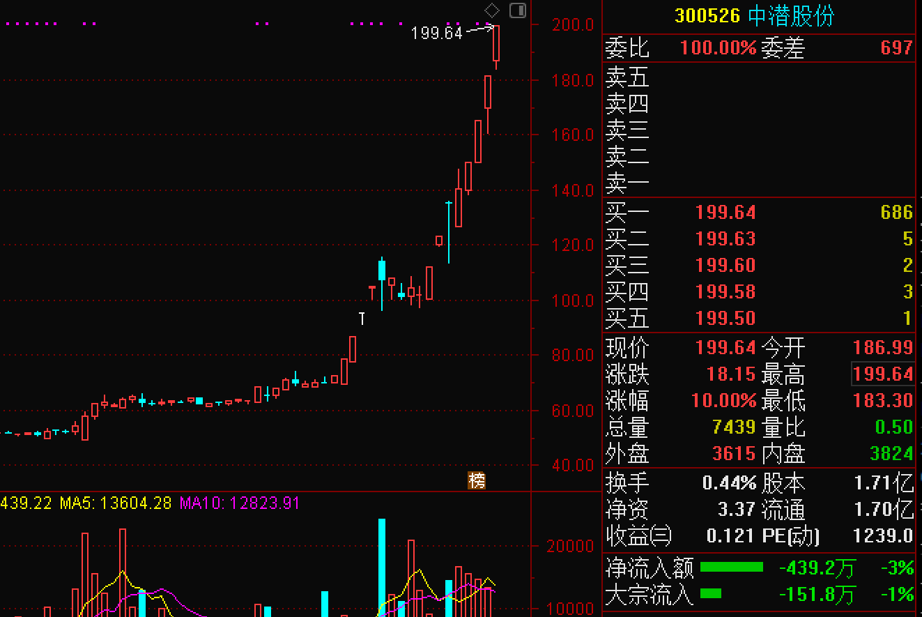 4月3日,中潜股份高开冲高回落,目前股价在200元/股附近。
