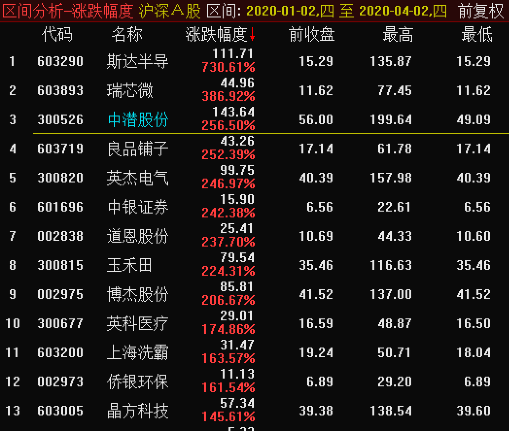 据通达信统计,今年以来,截至4月2日,中潜股份的累计涨幅高达256.5%,能排在其前面的,只有新股斯达半导(603290.SH)和新股瑞芯微(603893.SH)。如果从2019年6月起涨算起,中潜股份的累计涨幅更是惊人达到十三倍。