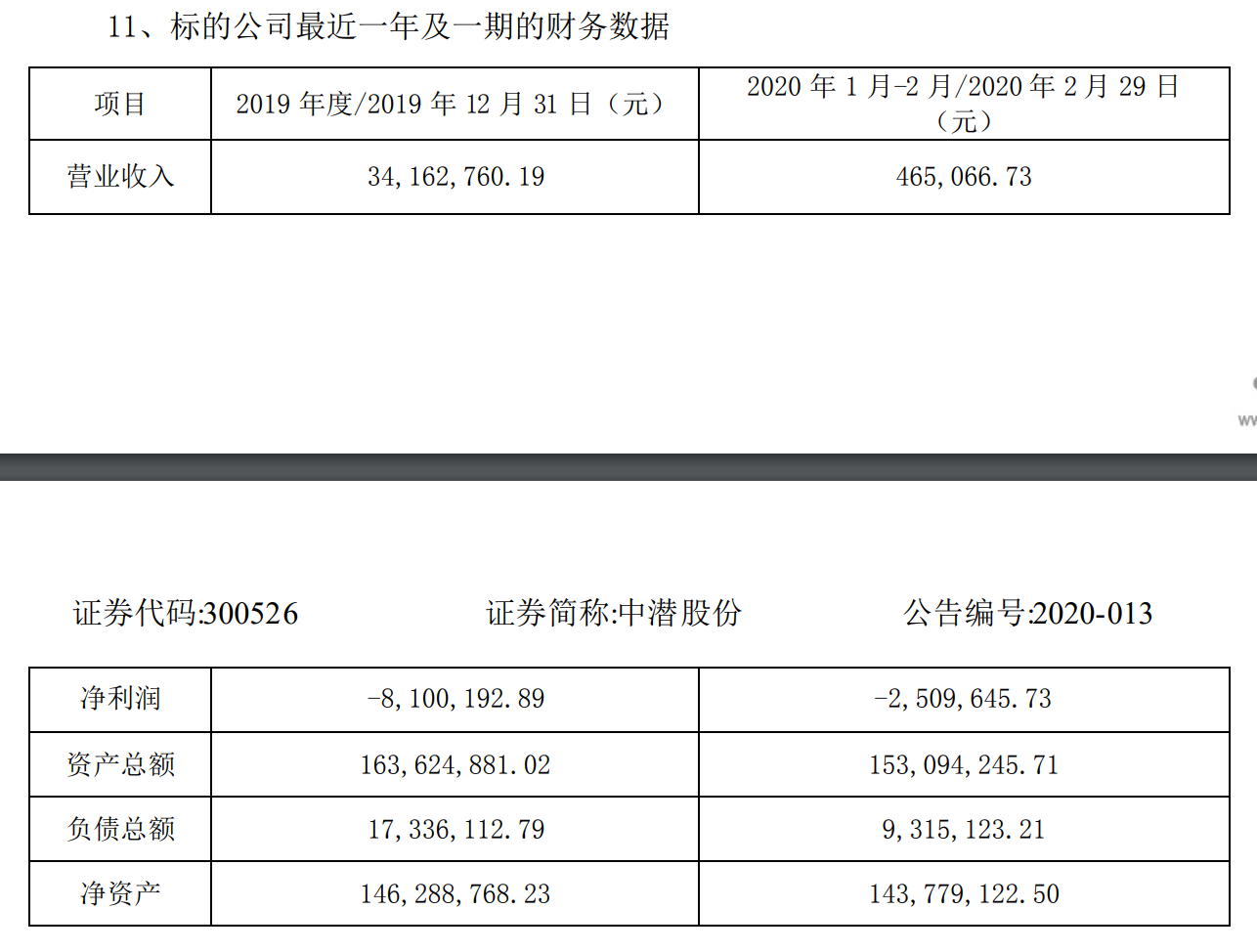 不过值得一提的是,该标的2018年才成立,2019年亏损810.02万元,2020年前两月净利润亏损250.96万元。这也是市场质疑的地方。