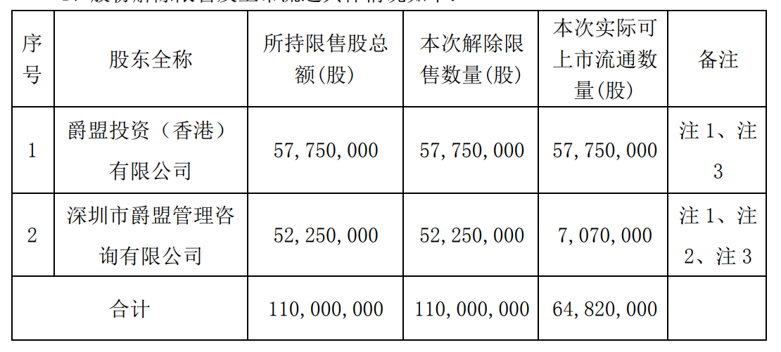 再后来的2019年8月2日,有6482万股限售股获得了流通,占总股本的37.98%,规模甚为壮观。其中,爵盟投资(香港)有限公司(下称香港爵盟)持有的5775万股(占总股本的33.839%)全部获得解禁流通,深圳市爵盟管理咨询有限公司(下称深圳爵盟)获得流通的股份有707万股(其持股量5429.17万股,占总股本31.813%)。当时香港爵盟与深圳爵盟互为一致行动人,两者合计持有1.1亿股中潜股份。