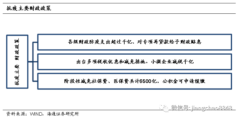 财政政策更加积极,税费减免超七千亿。新型肺炎疫情发生以来,财政政策更加积极,主要包括三个方面:(1)各级财政支出了超过千亿元用于抗疫,特别针对专项再贷款给予贴息支持。(2)出台多项税收优惠减免措施,如免征部分收入增值税、减免部分地方税种、延长亏损结转期限等,另外给小规模纳税人进一步减税、规模在千亿元左右。(3)阶段性减免社保费、医保费和实施缓缴停缴住房公积金等政策,人社部估计为企业减免社保缴费5000亿元以上,医保局估计职工基本医疗保险减征措施最大减负1500亿。