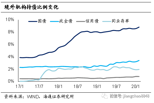 广义基金内部持仓分化。19年广义基金对债市的增持力量相比16年有小幅减弱,其中理财增持力量边际减弱,公募基金边际增强,尤其是去年下半年密集建仓的摊余成本法债基。持仓结构的变化导致广义基金对利率债增持多于信用债。广义基金对债市的需求在短期内依然有望保持强劲,但中期来看,政策的变化可能会是最大的变量。一是现金管理类理财的监管要求已向公募基金看齐,未来公募基金免税政策是否会变化;二是资管新规过渡期是否延长。