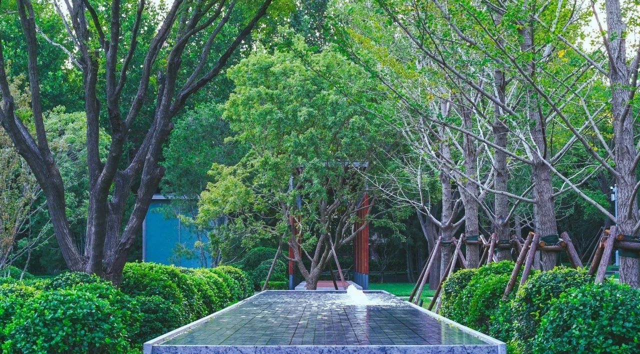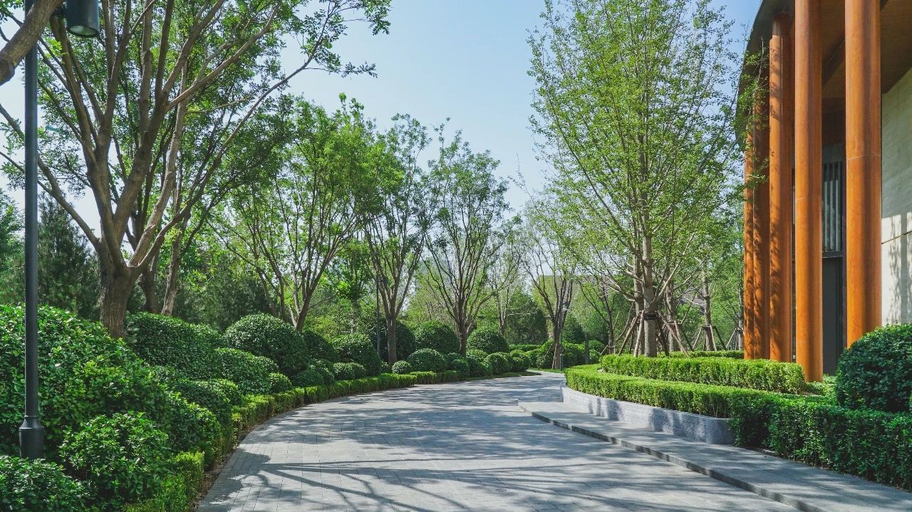 植物组团经由精心搭配,阵列行道树结合自然式组团,在炎炎夏季遮挡烈日,在冬季也不会遮挡暖阳。园区还设置了一处约11000平方米的中央景观广场,植栽、雕塑、水景和谐统一,带来“会呼吸”的景观体验。
