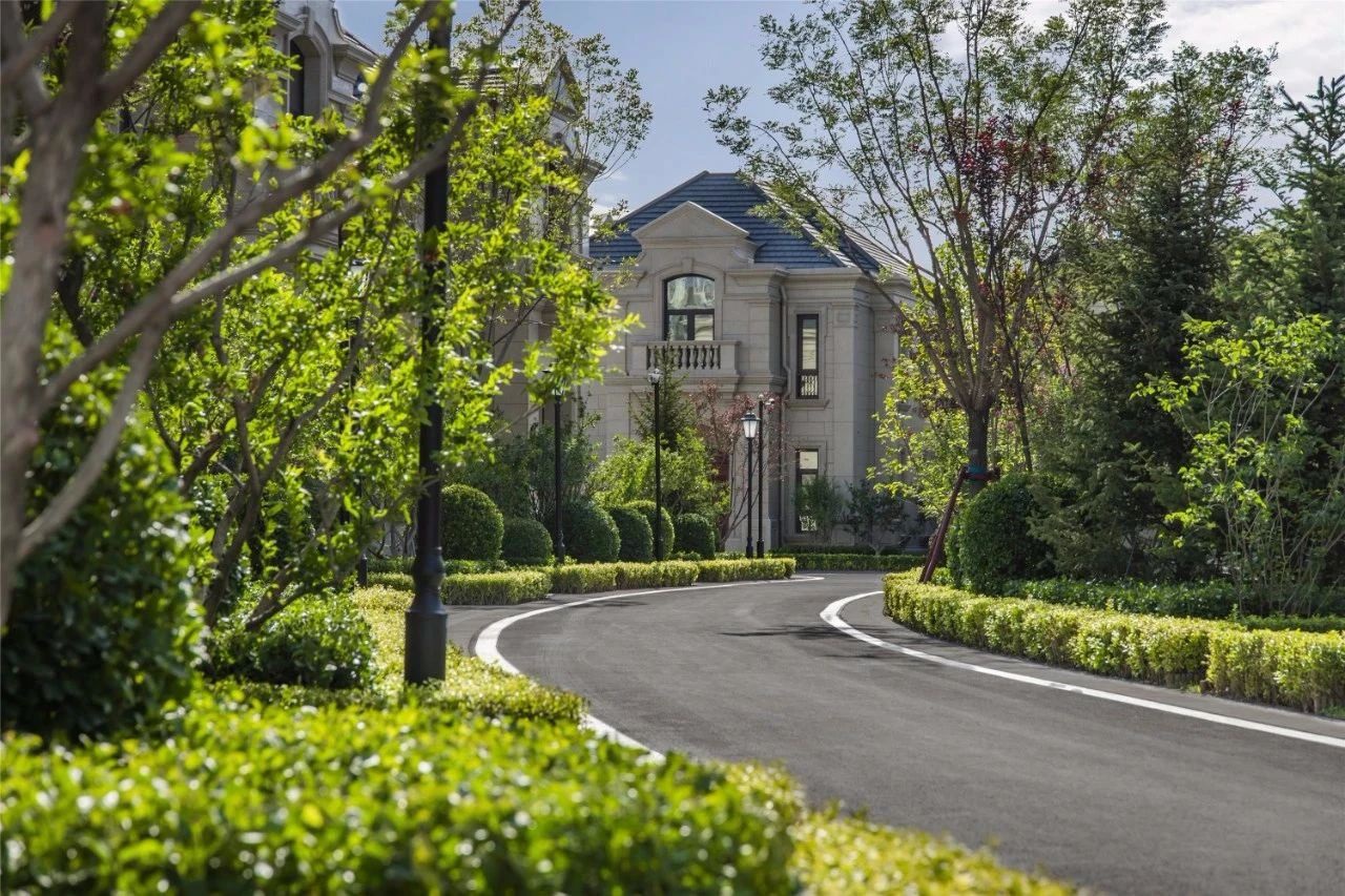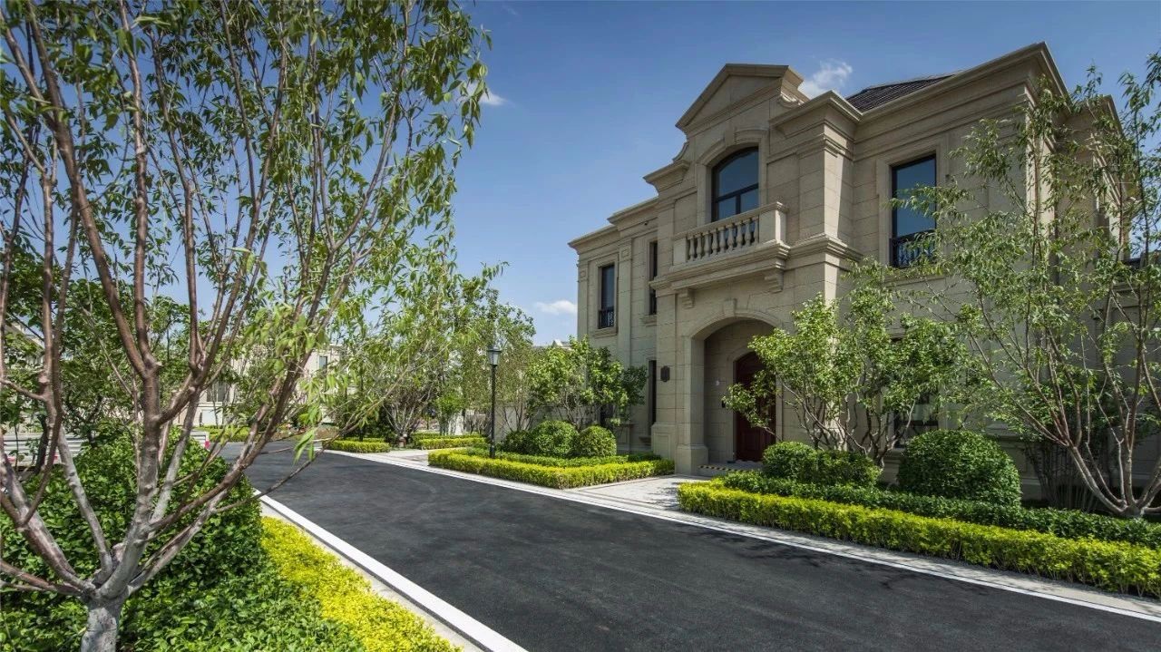 半湾半岛是融创在天津的第一个法式产品,临湾而建、自然天成。为保证别墅小院私密性,采用了约2.1米高的实体围墙,也使整个社区的外部环境更为整洁统一,高贵典雅的建筑外观与园林景观融为一体。