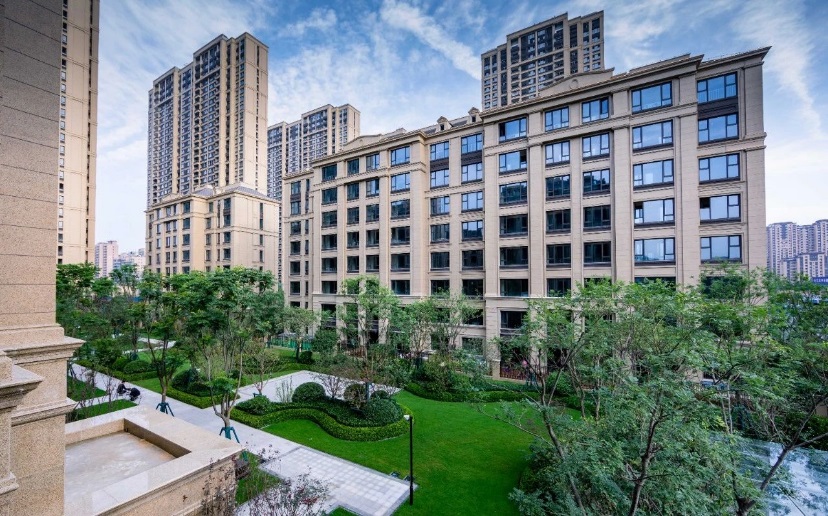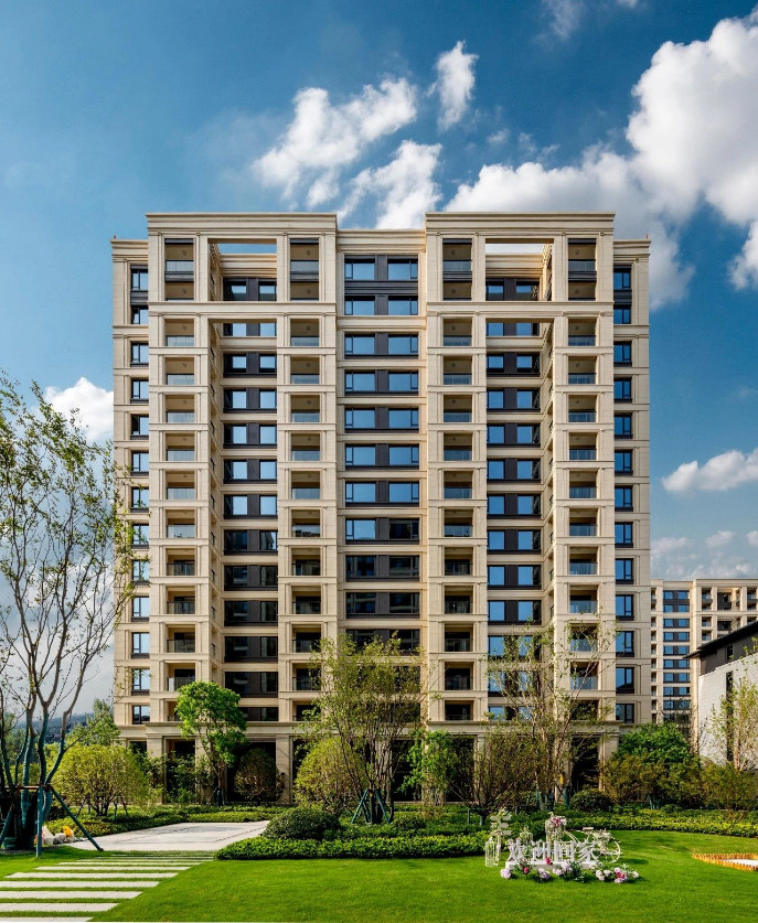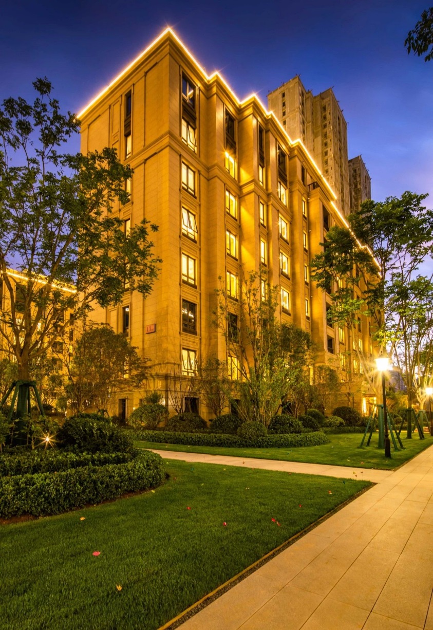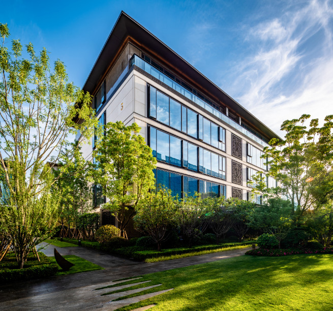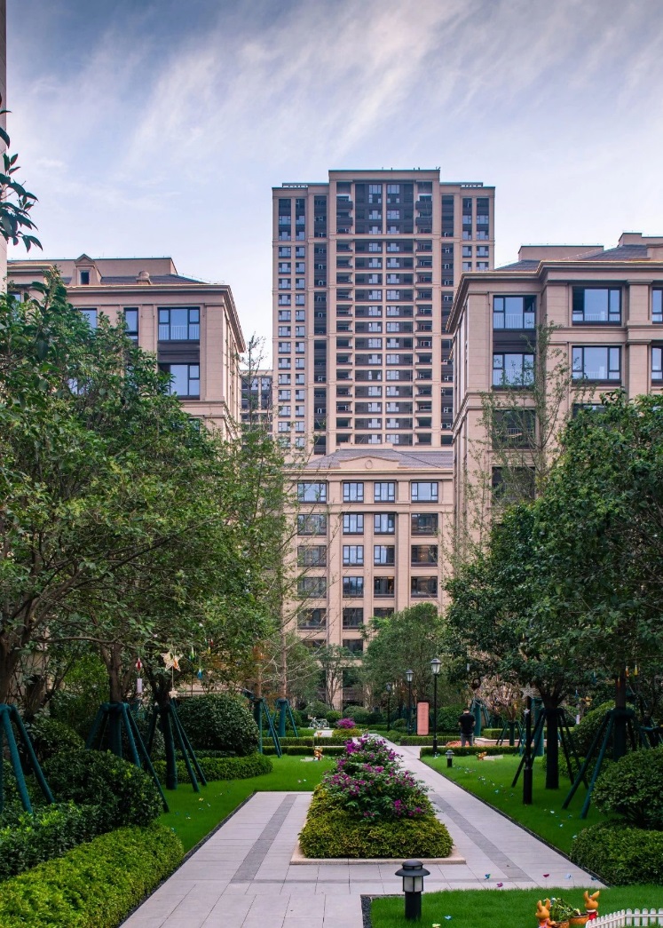 古典三段式的建筑,融合法式屋顶、壁柱、基座等元素,与园林景观完美融合。从室内精装到整个社区都弥漫着静谧儒雅的现代风格,并且因为摒弃了繁复的装饰,形成了大气、和谐、极富仪式感的居住环境,展现出当代都市生活中的人文关怀。