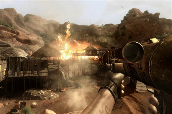 之前的故事背景设为二战时期,这太过老套,玩家们都厌倦了。也许你不会相信,正因如此,将射手的背景设置在现代一度是个具有革命性的想法。《使命召唤4:现代战争》的战争设置非常精彩,以至于后续的系列相比而言都只是对第四部的拙劣模仿。它有精彩的情节,我记得那个时刻,在直升机里,周围是炸弹爆炸的火光……语言无法描述当时的画面。难忘的还有人物优秀的狙击水准和引人入胜的结局。《使命召唤4》中有众多可称壮丽的时刻,这也说明射击类游戏的故事情节设计是有很大的发展空间的。
