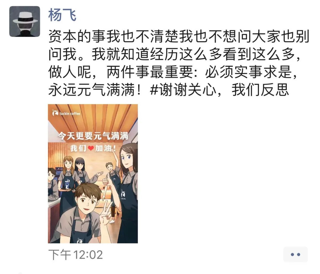 今天,在大股东陆正耀和CMO杨飞“今天更要元气满满”的喊话中,瑞幸各大门店仍照常营业。中午,瑞幸APP和小程序奔溃了,系统提示“请求异常、网络异常”。网友也纷纷声援瑞幸,希望瑞幸加油挺住,不能把优惠券浪费。负面评价也层出不穷,称瑞幸咖啡这样把欺诈做到认真极致的公司也是少有。