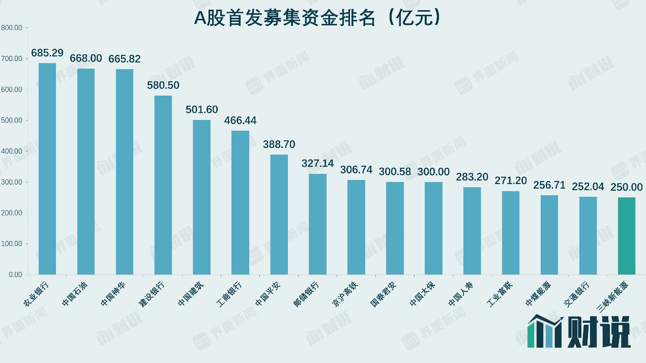 如果三峡新能源IPO成功,此次募资规模可在A股历史上排名第16位。