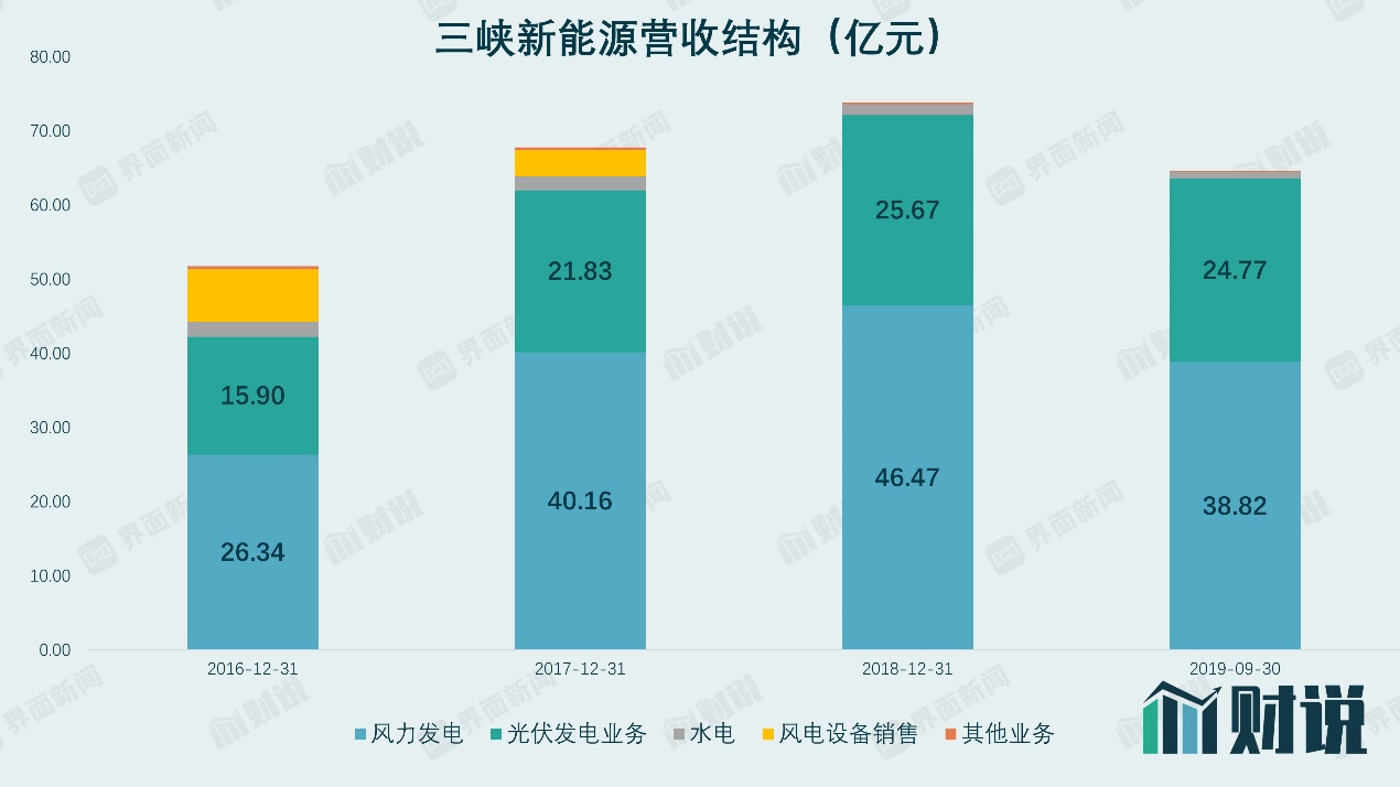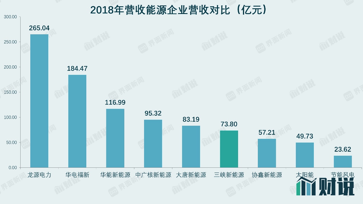 尽管募资规模巨大,但三峡新能源的业务体量在可比新能源发电上市公司中,并不算大。按营收排名,国内最大的新能源上市公司为龙源电力(0916.HK),2018年营收为265亿元,是三峡新能源的3倍以上。