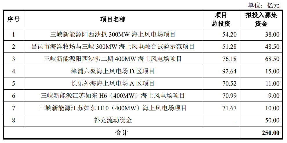 4月3日,中国三峡新能源(集团)股份有限公司(下称“三峡新能源”)披露了招股说明书,成为A股2020年至今最大的IPO项目,公司拟募资250亿元,投向7个海上风电项目并补充流动资金。
