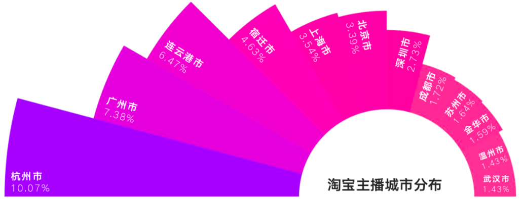 淘宝电商MCN最大的聚集地是杭州,集聚了全国一成左右的主播。
