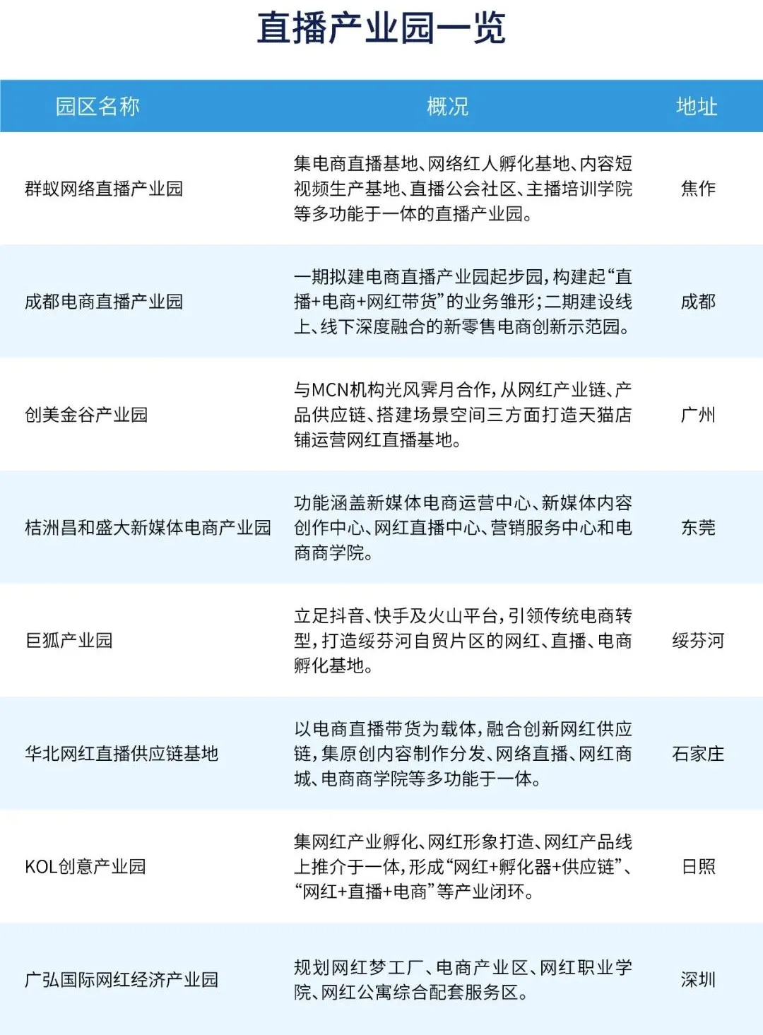 值得关注的是,疫情按下了各地直播经济的快进键,专属MCN园区迅速放量。不同于一般写字楼,这些园区能为MCN机构提供直播、制作、仓储、物流的一条龙配套设施,预计将成为吸引MCN机构选址的新高地。