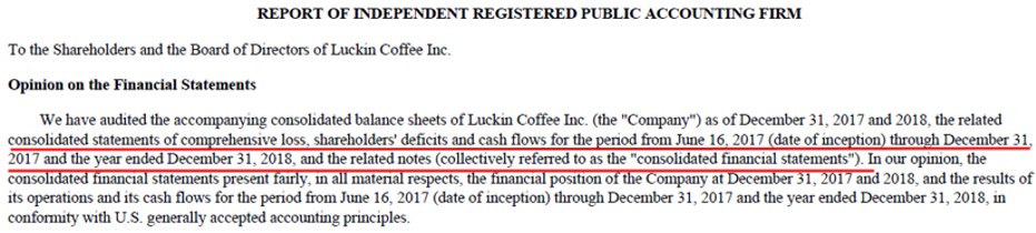 另一方面,审计师在出具的IPO审计意见中,包含的审计期间为截止到2018年末的报告期,而2019年发生的造假并不在审计期间范围内。