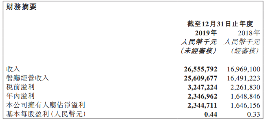 而线下门店收入正是海底捞的营收主力。2019年财报显示,公司的营收主要由门店收入、外卖业务、调味品及食材销售构成。其中,门店收入以一己之力扛起了营收大旗,占到总收入的96.3%,金额从2018年的164.91亿元大幅上升到2019年的255.88亿元,增长了55.2%。