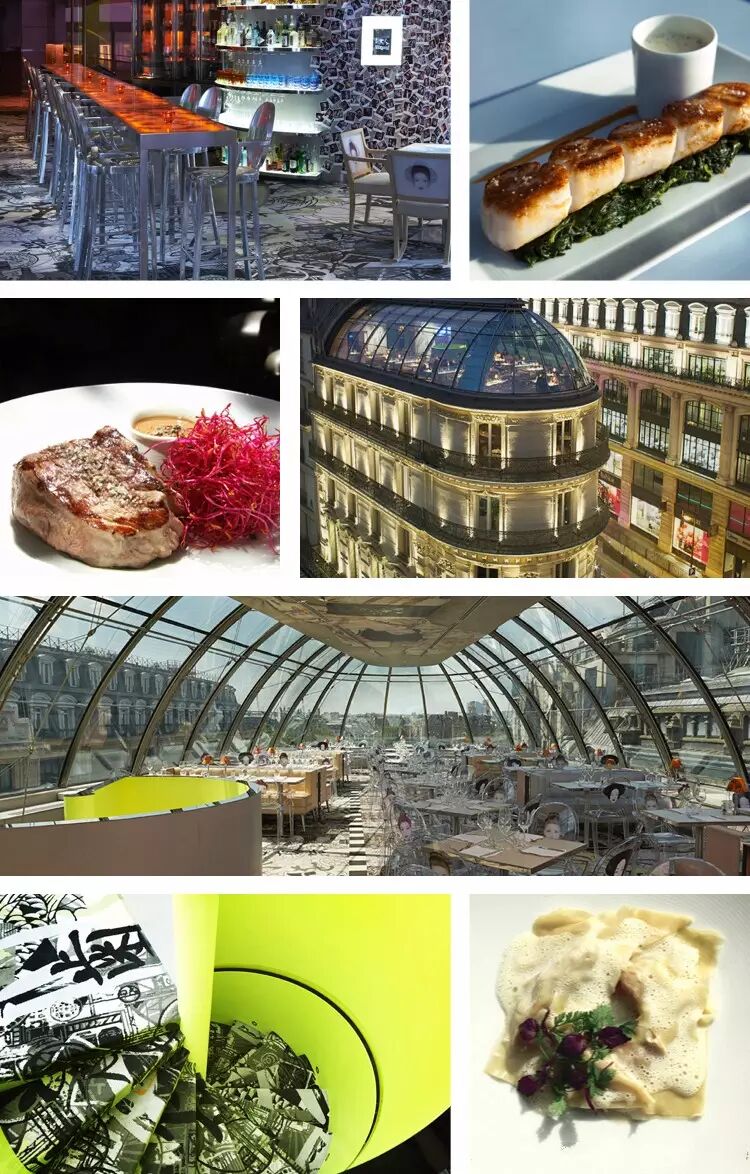 位于Pont Neuf前面,LVMH总部的对面,KONG酒吧餐厅占据了Kenzo总部大楼的最高两层。从2003年起一直非常人气,最大的原因要归功于它独特的设计理念。这间由知名鬼才设计师Philippe Starck担任设计的餐厅,以太空舱为概念联想,大面积的透明落地玻璃和屋顶,使室外的美丽风景一览无遗。