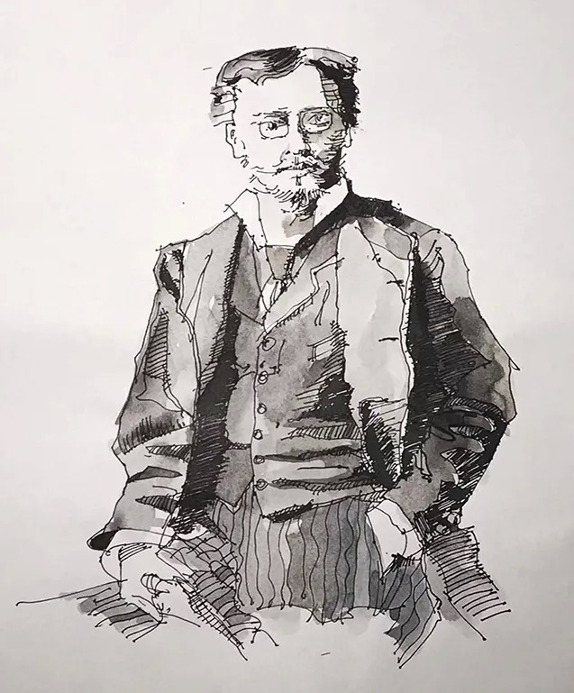奥托·瓦格纳(1841-1918)(作者手绘)(左图)梁启超(1873-1929)(右图)