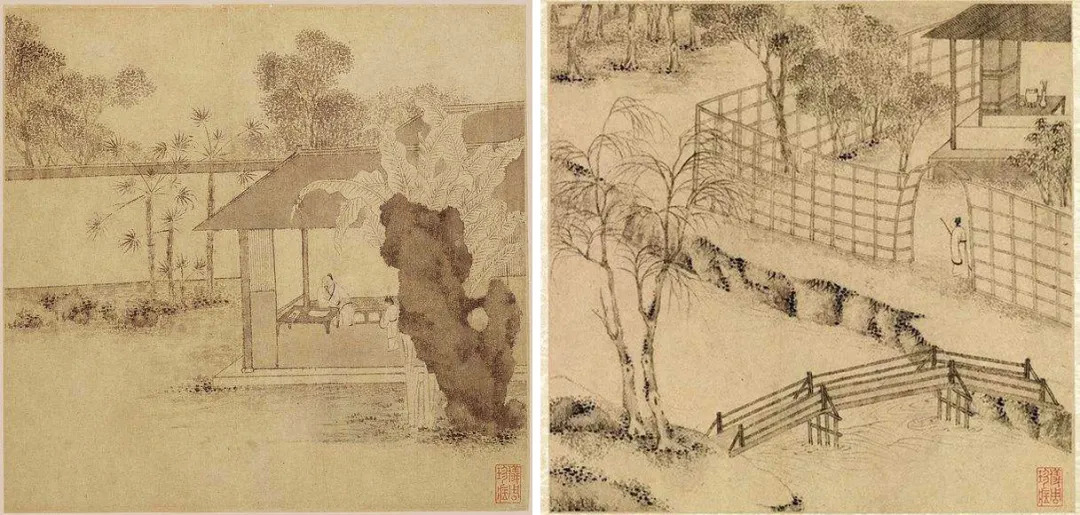 芭蕉槛(左)/小沧浪(右),文征明《拙政园十二景图》(1551年),现在藏于纽约大都会博物馆