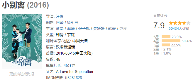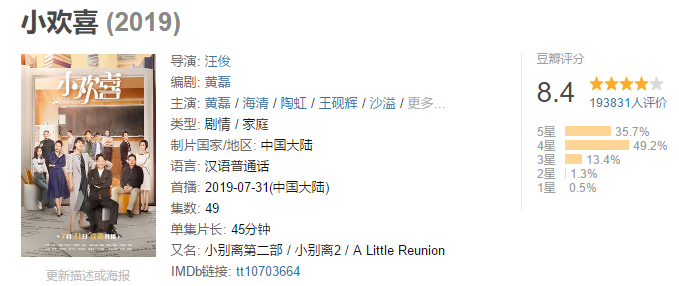 以柠萌影业“小”系列为例。与前作《小别离》相比,《小欢喜》在内容铺展、人物塑造以及细节呈现等方面都做到了更上一层楼,截止发稿前,该剧豆瓣评分仍保持在8.4分/193831人,比《小别离》高出0.5分。