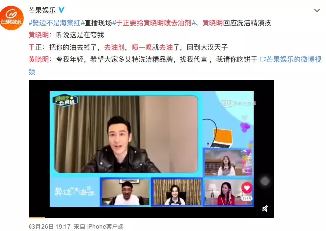 2、黄晓明:客户爸爸 快来找我代言洗洁精;娱理