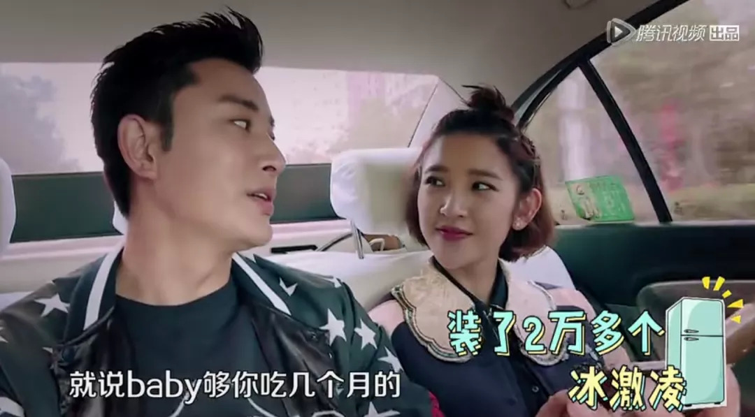 贾乃亮在综艺《看你往哪跑》里说,自己的宠妻秘诀都是跟黄晓明学的:杨颖在横店拍戏时,因为想吃哈根达斯,黄晓明就将整条街上的冰淇淋都买了回来,并且租了一个冰柜,足够吃上几个月。