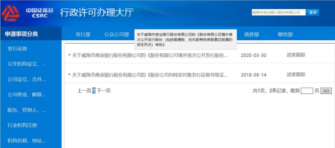 此后,威海银行并未死磕A股,转而将视线瞄向港股。2020年3月31日,证监会公告已接收威海银行境外首次公开发行股份的材料。关于为何弃A股转战港股上市,威海银行方面并未作公开解释。