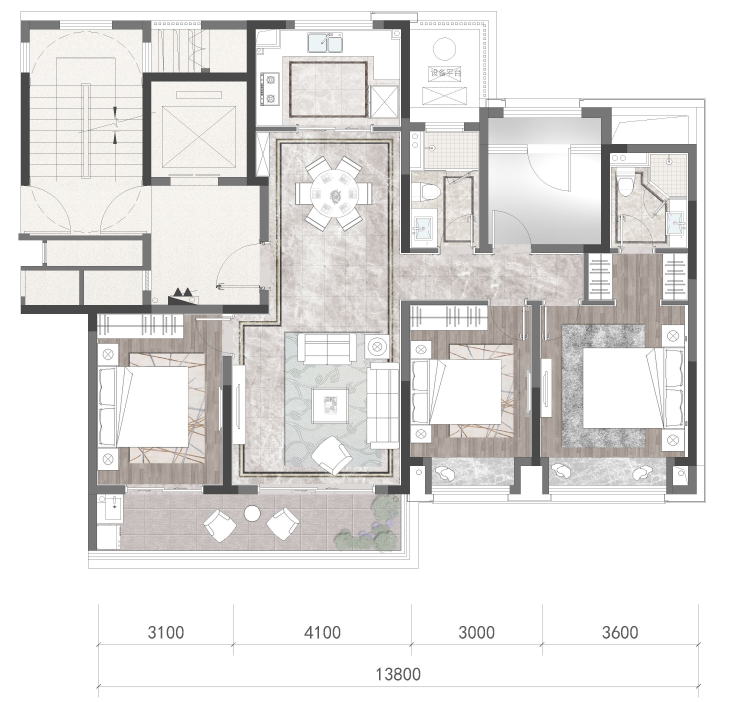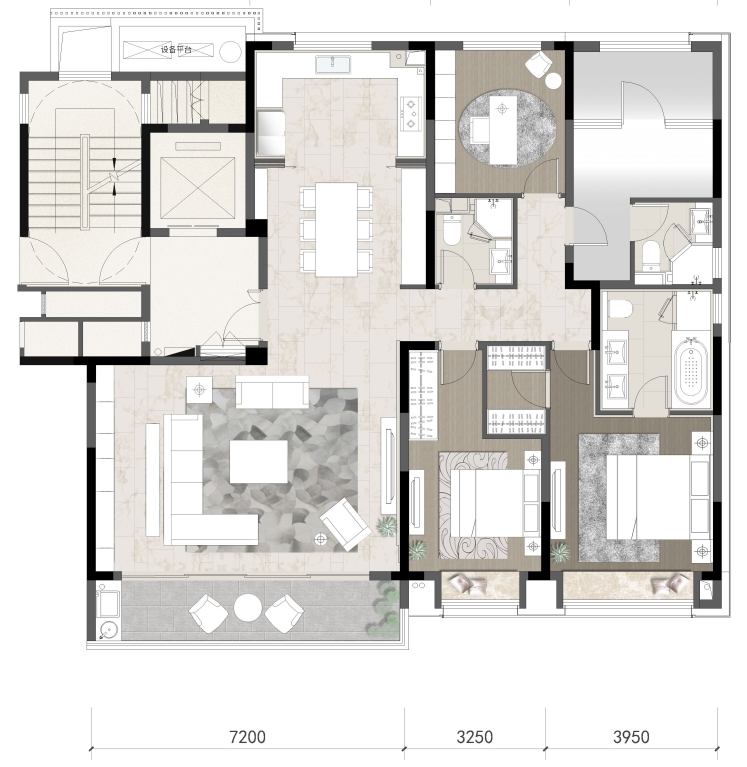 整套房子采用三卫双套房设计,经过年初黑天鹅的洗礼后,人们早已深知独立套房的重要性。