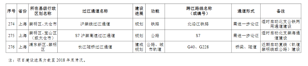 国家发展改革委4月7日正式印发的《长江干线过江通道布局规划(2020—2035年)》明确提出,到2035年,规划布局长江干线过江通道276座,其中上海市3座,涉及沪崇线过江通道、长江隧桥过江通道(轨道崇明线或公路)以及S7沪崇高速过江通道。《规划》中的79座过江通道要在2025年前重点推动实施,上海涉及沪崇线过江通道、长江隧桥过江通道(轨道崇明线或公路)。