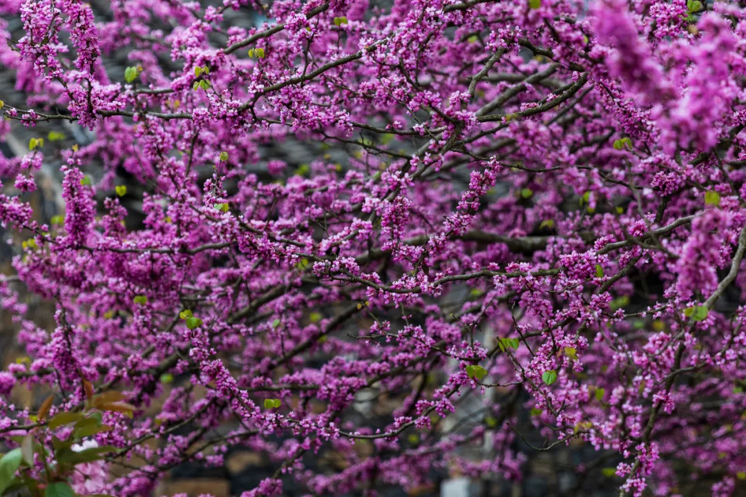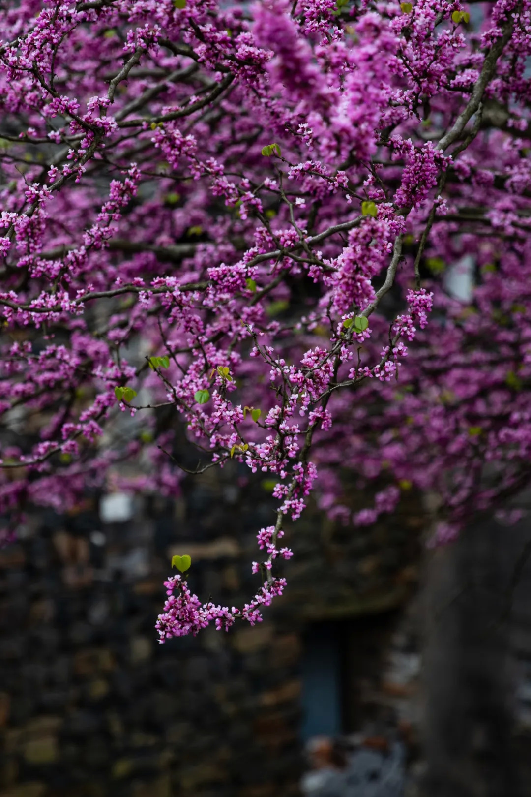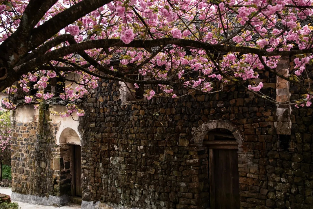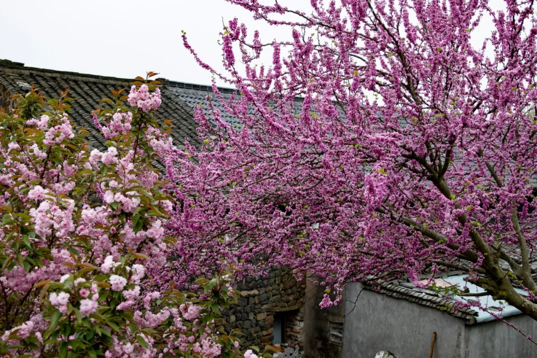 大岚镇的雅庄村,有一棵三十多年的樱花树。花谢花开,见证了时间流淌的痕迹。古朴的老屋、娇艳的樱花,还有繁茂的紫荆作伴,成了游客们的打卡圣地。