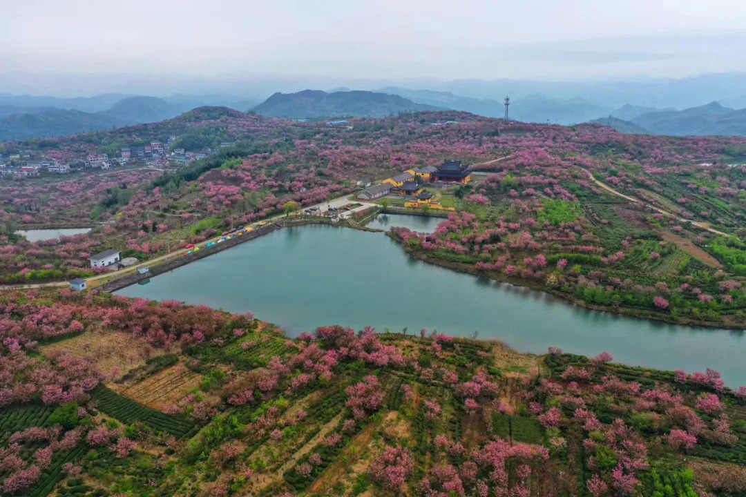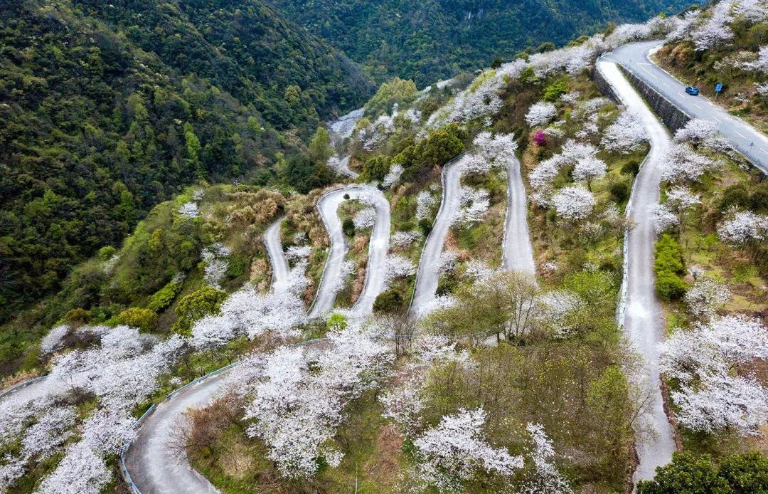 每年四月,大面积的樱花相继开放。漫山遍野的红白“花海”十分壮观。色彩和线条绵延不断,揉进了满眼的春意。