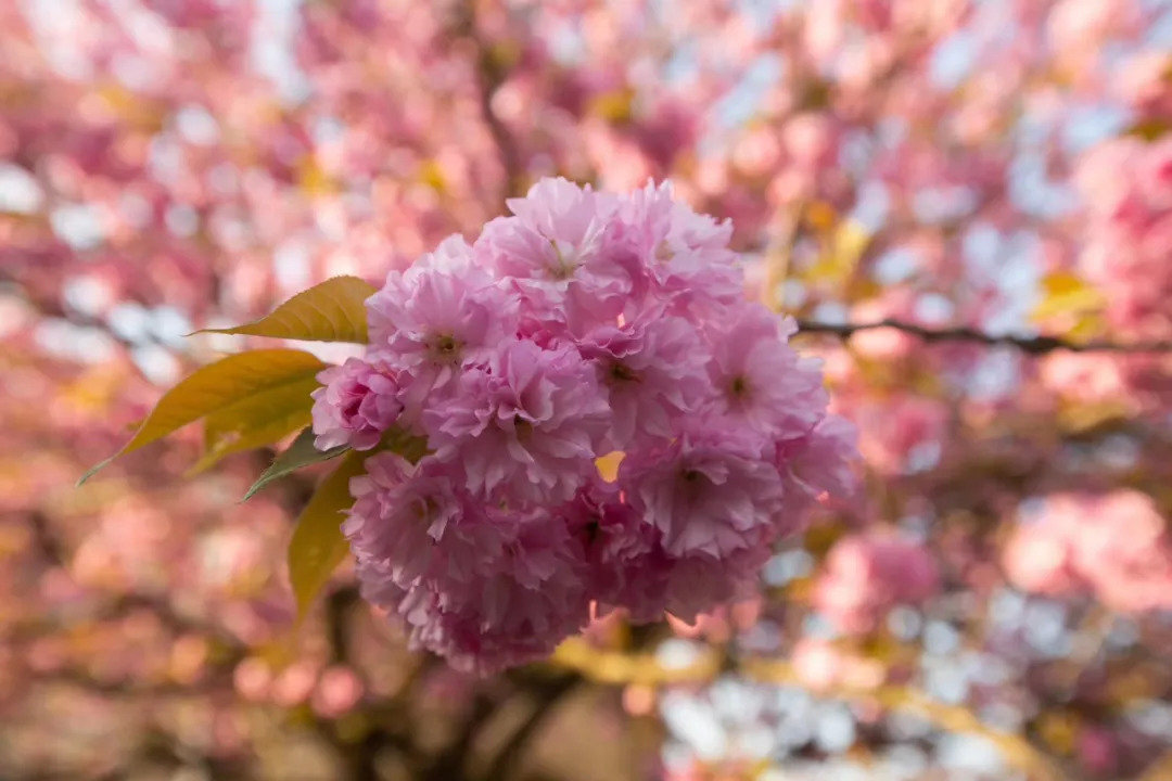 余姚大岚作为四明山上的观赏点之一,所植品种多以八重樱为主,最能体现“花团锦簇”的状态。一簇簇的花瓣缀满枝头、层层交叠,美不胜收。满树满树的烂漫光景,如绚烂的云霞,美得让人移不开眼。因而这里也成为了游客们拍照留念的不二之选。