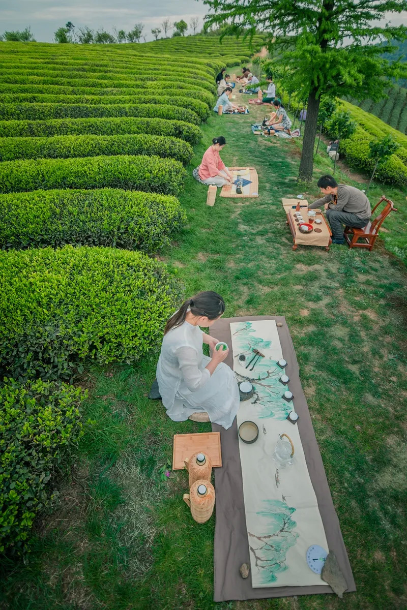 云雾缭绕之际,还能看到无边茶海幽幽吐翠。樱花、茶园,浸出了“万绿丛中一点红”的画意。喝一杯清茶,赏一赏樱花,这个春天原来可以这么惬意。