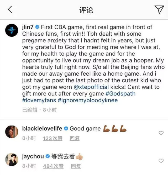 图片截自林书豪ins