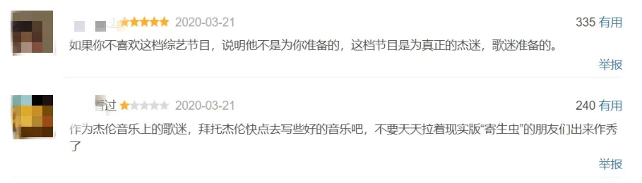 相比于路人观众对于这三位嘉宾的“一脸懵逼”、吐槽其“尴尬感十足”,杰伦粉丝对他们的包容度并没有显得更高,有不少粉丝更是表达出了远多于普通观众的不满。甚至有人在豆瓣中直言“现在的周杰伦,已经被他的小弟拖成了一个凡人”,并称其为“现实版‘寄生虫’的朋友”。