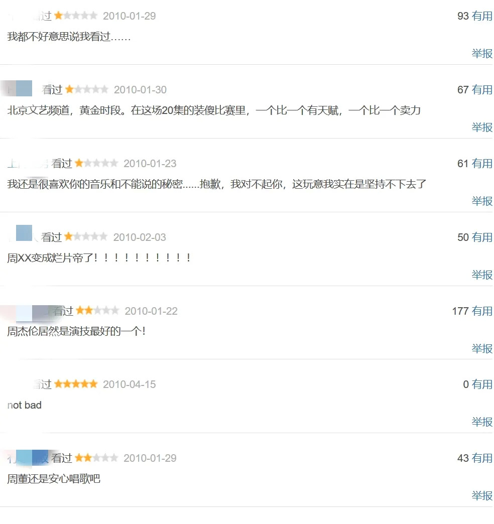 尤其是豆瓣评分仅有4.7分的《熊猫人》,主角更是被批评长相不行、演技不够,周杰伦为此还在《鲁豫有约》上坦言《熊猫人》被批很出乎自己的意料、和预期想象的不同,并笑称自己未来会“慎选朋友”。