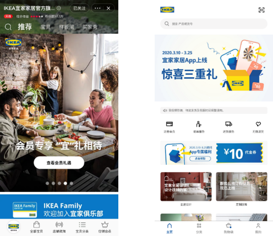 宜家家居天猫旗舰店首页(左),宜家官方app首页(右)