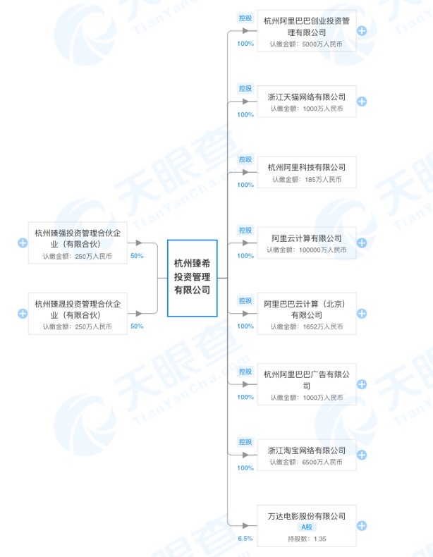 根据天眼查数据,杭州臻希投资管理有限公司为阿里巴巴100%控股企业。