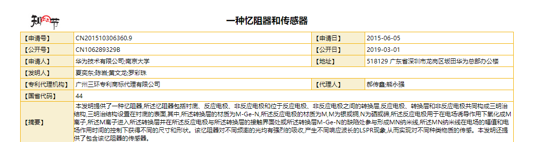 《科创板日报》9日讯,据知情人士透露,华为有意在忆阻器芯片领域进行布局。《科创板日报》记者在中国知网找到了部分佐证:华为分别于2019年3月(2015年6月申请)、2020年1月(2018年6月申请)公开了两份相关专利信息。