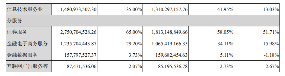 从收入结构来看,2019年东方财富的基金代销、证券经纪等金融中介业务占比继续提升,而早期依赖的互联网广告、金融终端销售业务等则日渐式微。