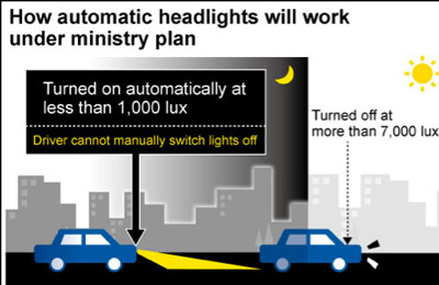 对日本政府来说,施行该政策的背后,是与日俱增的因车照明不良而造成的交通事故,自动感应式大灯不仅为驾驶员提供更良好的视野,也为道路上的其它交通参与者提供一定的方便。