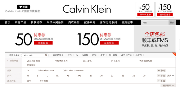 Calvin Klein去年9月入驻天猫平台,不久后就遇上”双11“,试水之后决定今年继续参加。不同于去年的是,Calvin Klein这次的筹备期从7月份就开始了,4-5万件的备货量也远远高于先前。这家美国服装品牌还参与了天猫的一些预售活动,消费者可以陆陆续续地看到参与打折的商品以及折扣力度。
