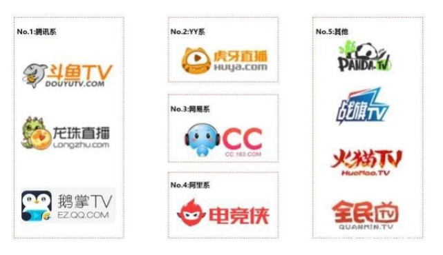 (2016年时各个体系的头部游戏直播平台)
