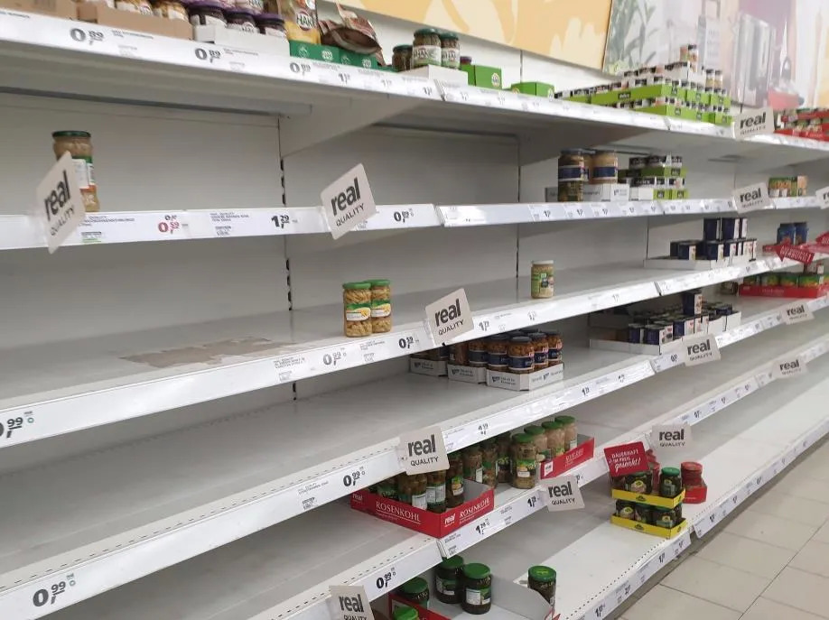 可人们发现,诸如英国伦敦及德国等许多城市的超市,罐头产品已被抢购一空,货架上空空如也。