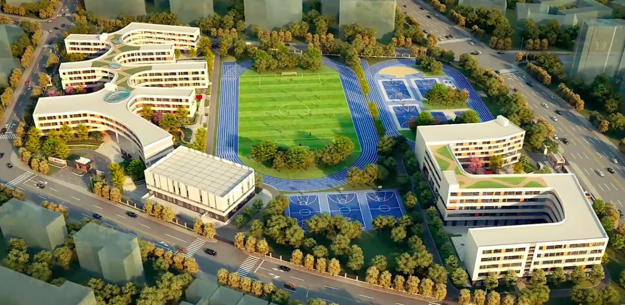 学校封顶仪式在学校工地现场进行,一进入学校,便感受到学校震撼的外观。以“习礼大树下,授课杏林旁”为设计理念,打造别具一格的建筑形态,也对空间的利用做了一个重新的定义。自然环境融入现代教育场景,教育空间需要与教育模式同步发展,多维度的弹性成长空间丰富学生的感知,开放的,属于学生的空间。