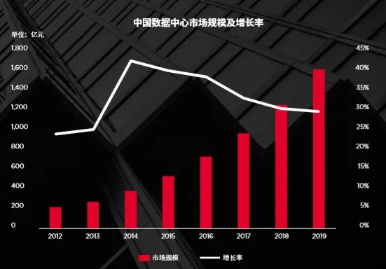 戴德梁行预计2020年规模将突破2000亿元。这意味着自2012年以来,中国数据中心市场规模翻10倍。多年来中国市场保持29%~42%的增速,远高于全球数据中心市场增长水平。但中国数据中心人均拥有量仅为美国的1/20,数据中心市场需求长期存在。