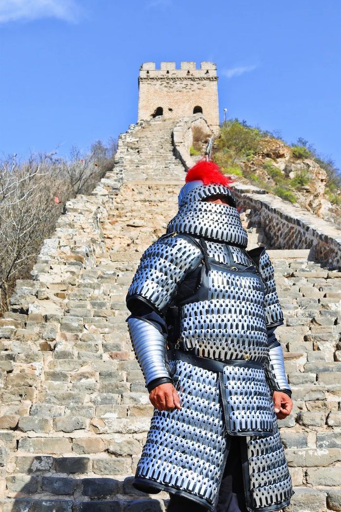 除了满山春意和花海外,4月13日景区开放当日还有身着甲胄的士兵在长城驻守,此景瞬间使人穿越回金戈铁马的峥嵘岁月,回忆往昔。