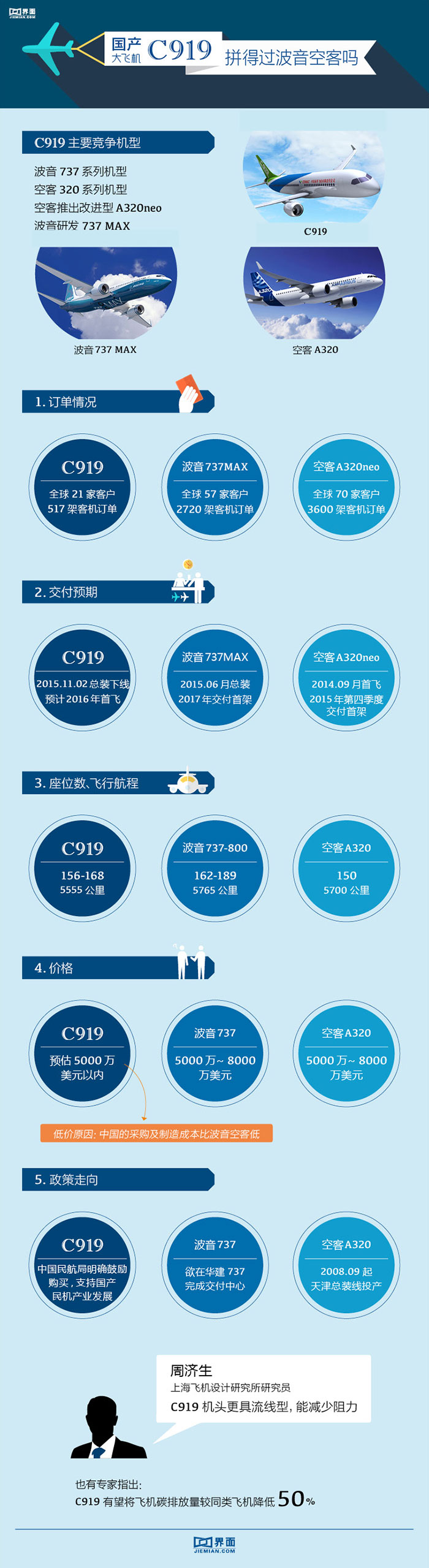 不过,从价格方面来看,C919具有优势。在此次下线仪式上,中国商飞并未正式公布C919的价格,但是预计单价不会超过5000万美元,而波音737与空客A320的价格是5000万至8000万美元。