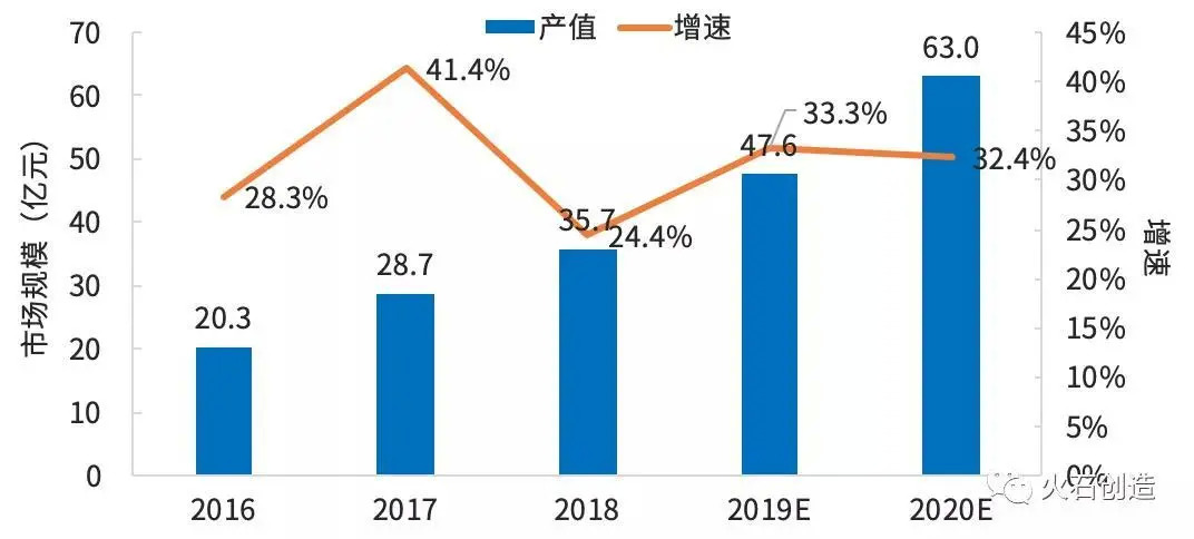 从应用效果来看,规模化使用医疗机器人将是未来医疗领域的一个趋势。我国一批医疗机器人企业发展迅速,产业集聚特征明显,5G、人工智能等新技术与医疗机器人加速融合。2018年国内市场规模达35.7亿元,预计2020年有望超63亿元。