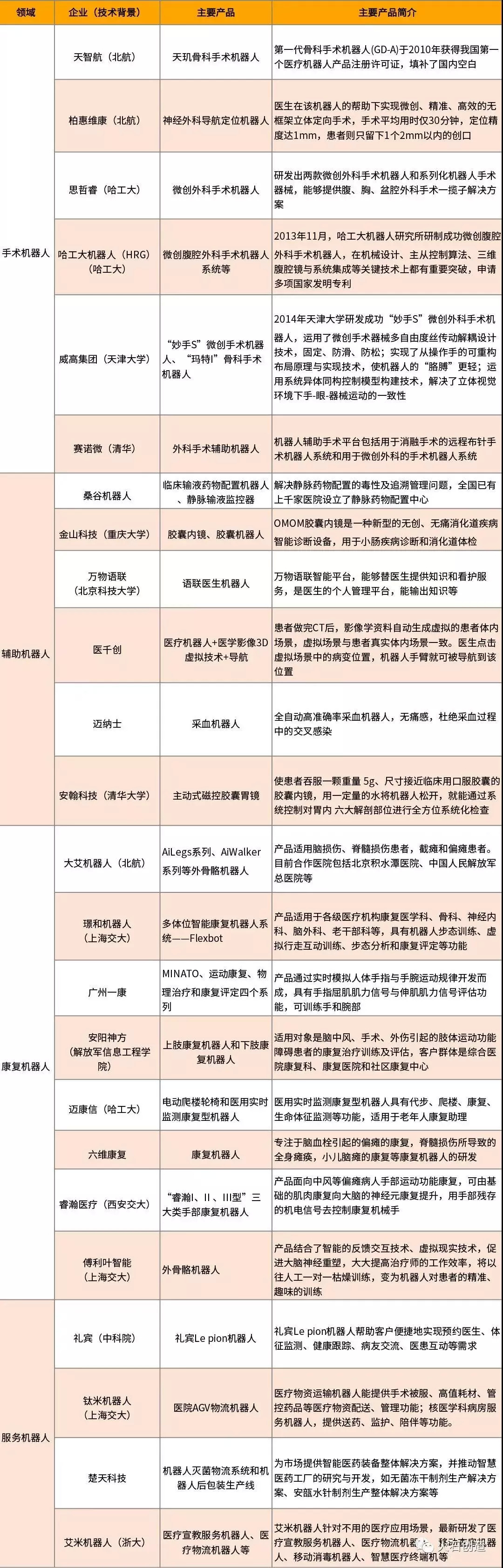 虽然医疗机器人在机器人应用中是一个相对较小的细分市场,但作为单位价值最高的服务机器人,医疗机器人成为当前机器人行业和医疗行业发展和投资的热点。